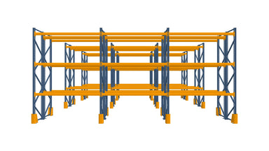 Paletten-Typ: Europalette Breite: 3.99 m Höhe: 4.50 m Tiefe: 1.10 m Paletten-Gewicht: 500 kg Ebenen: 3 Reihen: 1 Auflage: Gitter Re...