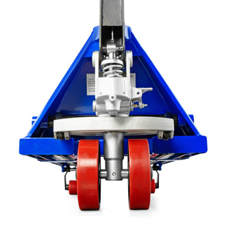 Paleciak SIX-3500 3500kg, posiadający premium koła poliuretanowe, charakteryzuje się solidną, odporną na skręcanie stalową konstrukcją i został specjalnie zaprojektowany do codziennego, intensywnego użytkowania w handlu i przemyśle. Jego wysoce wytrzymałe komponenty zapewniają duży udźwig i trwałość, idealne do wymagającego transportu palet.