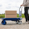 Terenowy wózek nożycowy platformowy XOFFROAD zapewnia solidne wsparcie w terenie. Duża wysokość nad podłożem ułatwia wypełnianie maszyn, regałów lub miejsc magazynowych na placach budowy lub powierzchniach szutrowych. Wózek nożycowy platformowy może być ponadto stosowany we wnętrzach.