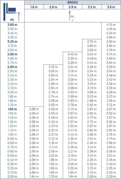- Wysokość podnoszenia: Do wyboru od 1,6 m do 3,6 m